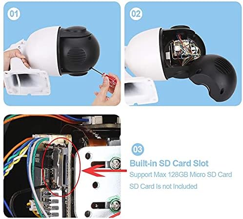 🌛【5MP FHD Resolution & 196ft Night Vision】This CCTV security camera outdoor is an Untral HD 5MP PTZ WIFI Camera, it captures 2560x1920pixel images, providing outstanding image resolution for both home and business security. Full HD 5MP resolution, built-in 6pcs high performance infrared array LED lights, offers you clear night vision up to 196ft even in pitch dark. This wifi cctv camera makes everything of your home under control! Protect your home/office/business 7*24.