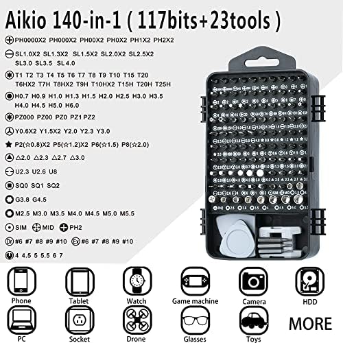 140 in 1 Precision Screwdriver Set,Aikio Mini Screwdriver Set, Magnetic Screwdrivers Set DIY Repair Tools Kit for iPhone, Laptop, PC, Watch, Glasses and Other Electronics. (Black)