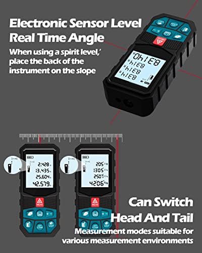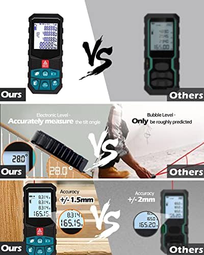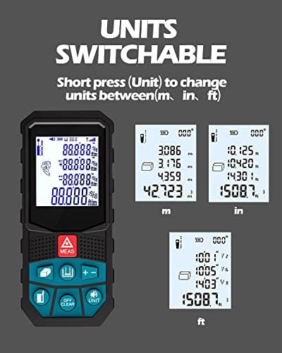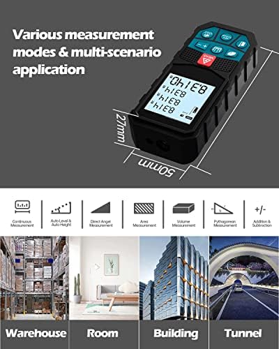 SUPER LARGE BACKLIGHT SCREEN: Large backlight screen provides users with a better visibility. The multi 4-line backlit LCD is easy to read and can also be used in dark environments. With accuracy up to ±1.5mm, the portable laser measure can perfectly finish a measure task ranging from 0.16 to 165 feet.
