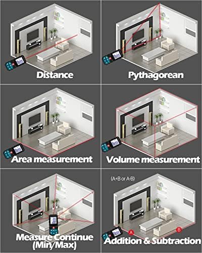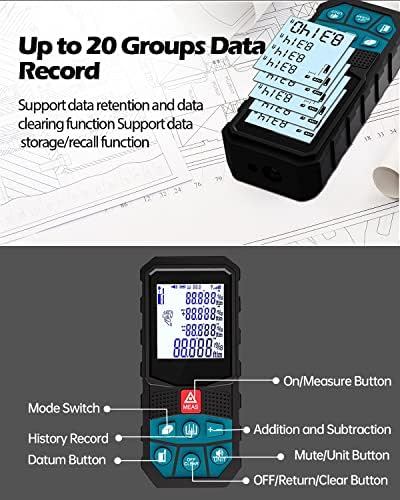 MULTIFUNCTION+ 20 DATA STORAGE SETS: With this handy laser distance meter you can easily set the display unit between meter/inch/foot. Up to 20 records can be saved and retrieved. The laser level is ideal for home, construction and industries, especially in large areas such as rooms, apartments, buildings, real estates, factories, warehouses, etc.