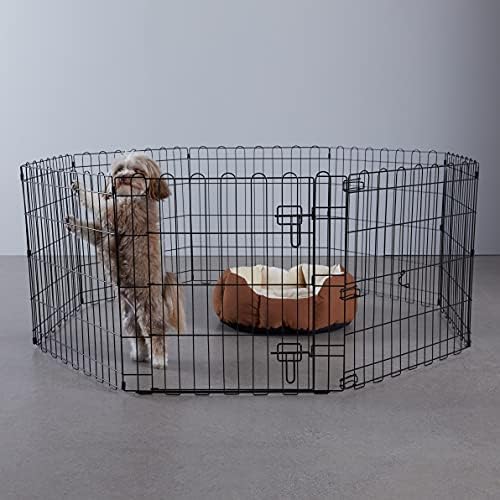 Amazon Basics Foldable Metal Pet Dog Exercise Fence Pen With Gate – 24 Inches (61 cm)