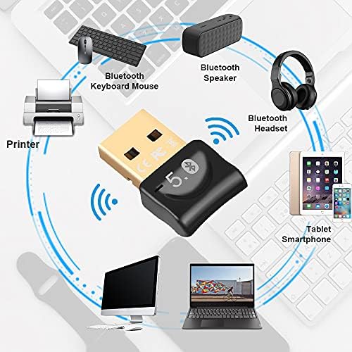 【Wide Compatibility】 Bluetooth 5.0 USB dongle compatible with Win7 / 8 / 8.1 / 10. The bluetooth usb adapter allows your PC or laptop to connect to bluetooth-enabled devices, such as Bluetooth keyboards, mice, printers, speakers and headphones, etc. You can use a Bluetooth adapter to seamlessly connect to different devices at the same time.
