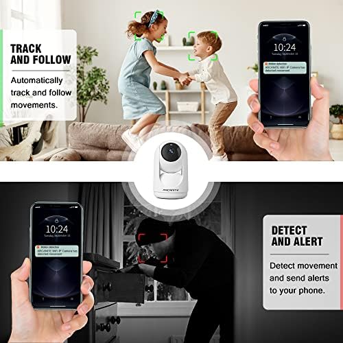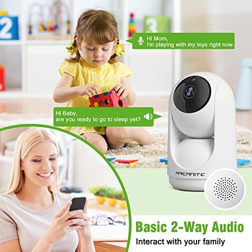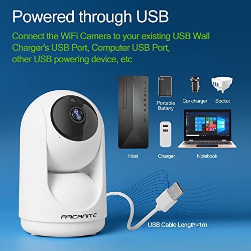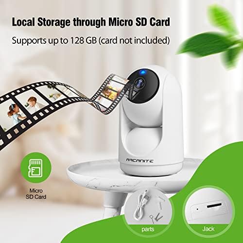 ARCANITE 1080P Wireless Home Security WiFi IP Camera for Baby, Pet, Nanny Monitoring. App for Pan-Tilt-Zoom controls, Motion Detection Follow, Night Vision, 2-Way Audio, MicroSD Card Slot, White