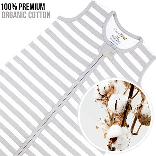 Baby Sleeping Bag 0.5 TOG, Organic Cotton Baby Wearable Blanket, Sleeping Sack with 2-Way Zipper, Lightweight and Breathable Sleep Bag, Large (12-18 Months), Clouds/Stripe