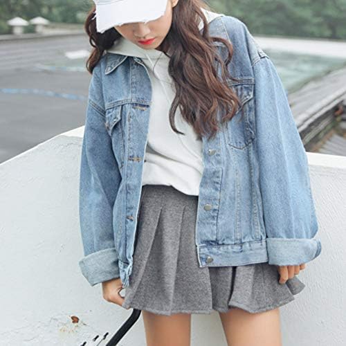 Beskie Oversized Denim Jacket for Women Grils Long Sleeve Boyfriend Jean Jackets Loose Coat