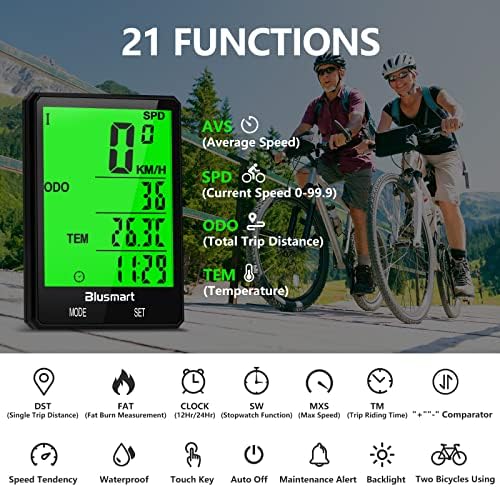 Bike Computer, Wireless Cycling Computer Wide LCD Display Bike Speedometer 21 Functions Odometer