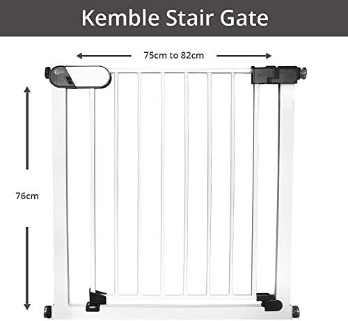 Callowesse© Kemble Stair Gate 75-82cm, White. Pressure Fit Metal Baby Gate & Pet Gate, Red/Green Safety Locking Indicators.