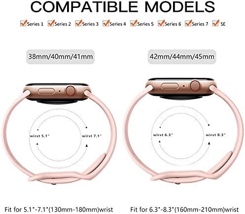 【Compatible Models & Free Size】The sport silicone watch straps compatible with Apple Watch SE, Series 7, Series 6, Series 5, Series 4, Series 3, Series 2, Series 1, Nike+, and Sports Edition, ALL VERSIONS, including iWatch Series 7/6/SE/5/4/3/2/1. 38mm/40mm/41mm fits for wrist 5.1″-7.1″ (130mm-180mm); 42mm/44mm/45mm fits for wrist 6.3″-8.3″ (160mm-210mm) (Note: watch no included)