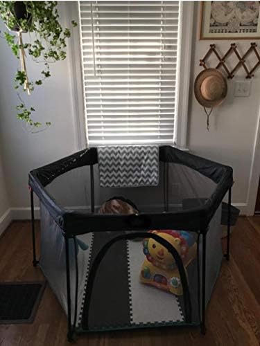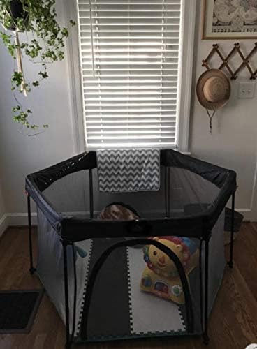 Deryan Baby Playpen, Strong and Durable Play Pen, Foldable & Compact, Fitted Floor Mat,Black