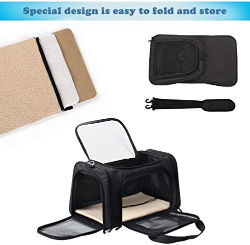 【PORTABLE & COMFORT】- Carrying handles and adjustable shoulder strap, easy for you to carry. It also comes with a cozy fleece pad and mesh windows for ventilation, your pet could breathe fresh air and enjoy the view.Three entrances, easy to access. Unzip top entrance, pet can poke their head out.