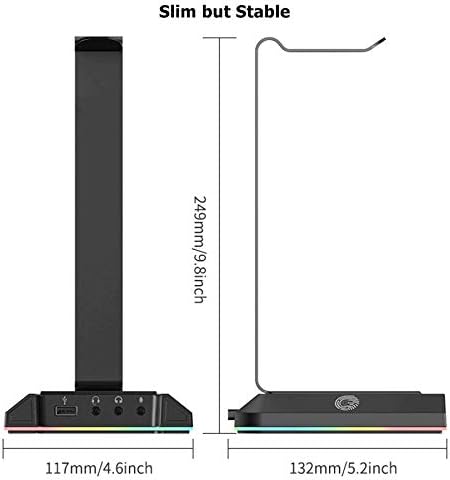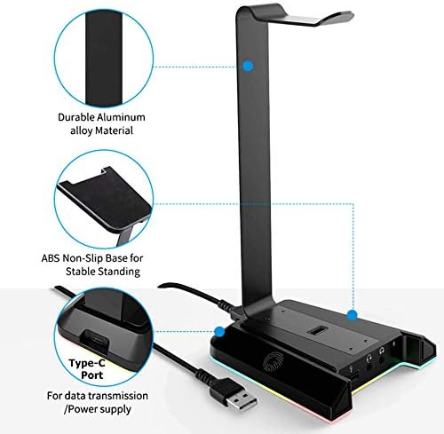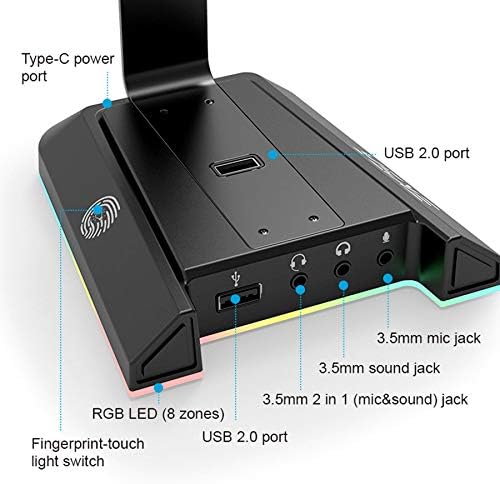 【RGB Lighting Base】The RGB headphones Stand provides 3 lighting modes and creates a cool gaming atmosphere.The fingerprint-touch switch enables you to quickly switch ON&OFF the RGB effect. (Rainbow loop/Single static color/Breathing mode)