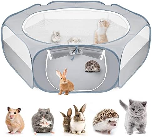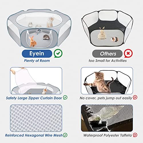 Eyein Small Animal Playpen, Upadated Waterproof Chewproof Pet Cage Tent with 2 Breathable Double Openning Zipper Door, Foldable Indoor Outdoor Exercise Fence for Hamster Guinea Pig Rabbit Kitten Puppy