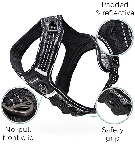 Fauna No Pull Reflective Small Black Dog Harness – Comfortable Padded Adjustable 3 in 1 Pet Vest Harness with Front and Back Lead Attachments & Control Handle for Training or Walking Puppies & Dogs