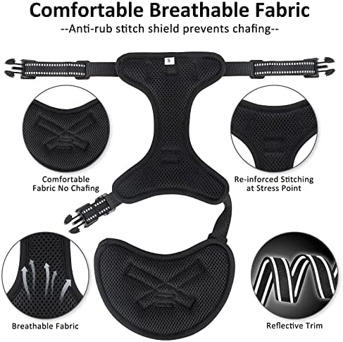 【DURABLE & COMFORTABLE】Your dog will enjoy the daily walk in this comfortable dog harness! Made of durable nylon oxford and padded with a soft cushion to protect your dog’s skin. Breathable air mesh keeps your dog cool during outdoor activities.