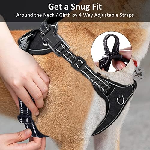 【SAFER & BETTER CONTROL】Super bright reflective stripes ensure SAFE walking in dark and night. A sturdy, soft neoprene padded handle on the back is very convenient for grabbing your dogs when necessary, also helps get in the car or steps. Please MEASURE your dog to get the correct size before purchasing!