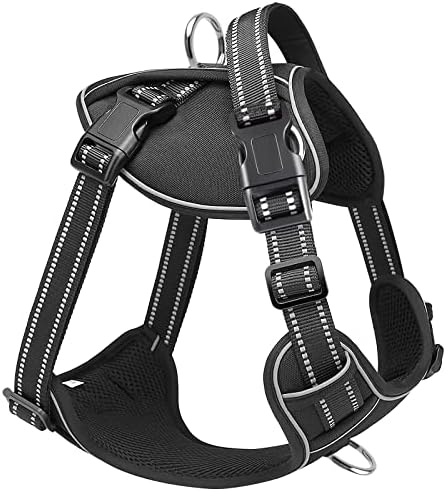 FEOYA No Pull Dog Harness, [Release on Neck] Reflective Adjustable No Choke Pet Vest with Front & Back 2 Leash Attachments, Soft Control Training Handle for Small Dogs(Black,S)