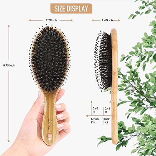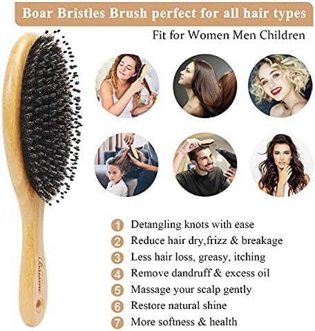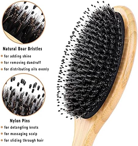Hair Brush, Boar Bristles Detangling Brushes for Curly Straight Long Short Fine Hair, Hairbrushes for Women Men Kids (oval)