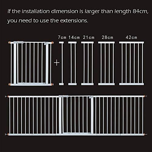 Hfyg Security Gate Indoor Safety Gates Extra Wide Child Gate Pet Gate for Dogs Cats Baby Barrier for Doorways Stair Hallway, White Metal Stair Gate (Size : 75-84CM)