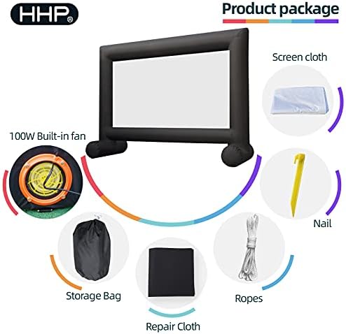 HHP 16Ft Inflatable Mega Projector Movie Screen with 100W Built-in Fan – Indoor Outdoor Party Backyard Cinema Travel Theater Projector Screen – Supports Front and Rear Projection