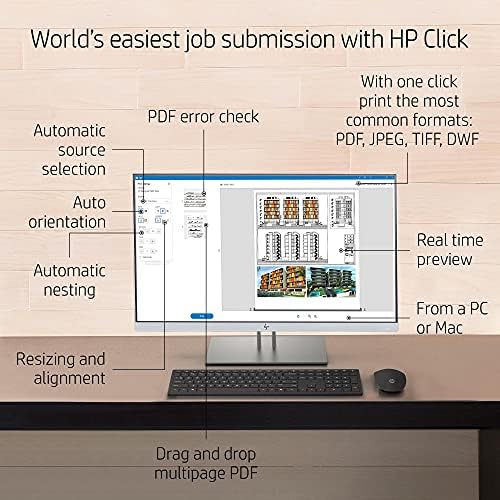HP DesignJet T650 Large Format Plotter Printer 24in up to A1 , Mobile Printing, Wi-Fi, Gigabit Ethernet, Hi-Speed USB 2.0, 2-Year Warranty (5HB08A)