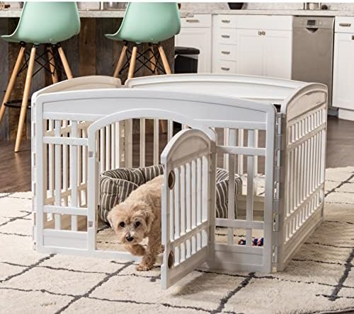 Iris Ohyama, Dog playpen / puppy playpen, door with latch, clips for easy assembly & disassembly, weather-resistent, for dog – Pet Circle CI-604E – White