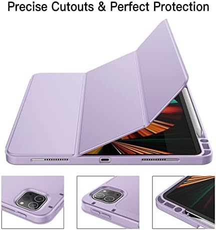 JETech Case for iPad Pro 12.9-Inch (5th Generation, 2021 Model) with Pencil Holder, Support 2nd Pencil Charging, Slim Tablet Cover with Soft TPU Back, Auto Wake/Sleep (Light Purple)