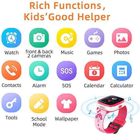 📌【Kids Smartwatch with Multi-funtions】 2020 Upated New Version Kids Smart Watch phone with 1.54″”HD LCD touchscreen display for boys girls.Super long standby around 7days .Support 11 languages ,Two-way call,Double carames,6Games and music player,Photo album,SOS,Alarm clock,Calender,Stop watch,Timer,Caculator,Wallpaper,Dail