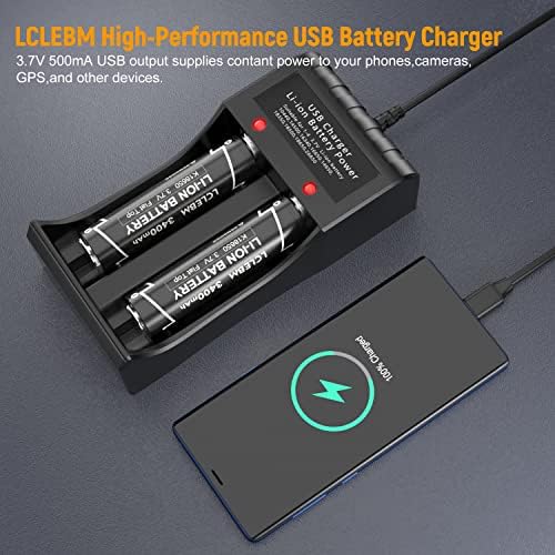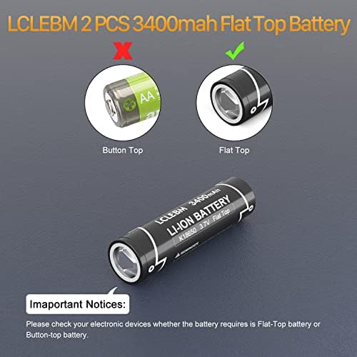 LCLEBM 3400mAh Battery for Flat Top 3.7V 20A High Drain Li-ion Rechargeable Battery with 2 Bay USB Charger for Camera,Fan,Spotlight, Flashlight and More