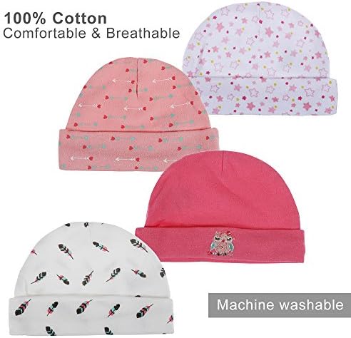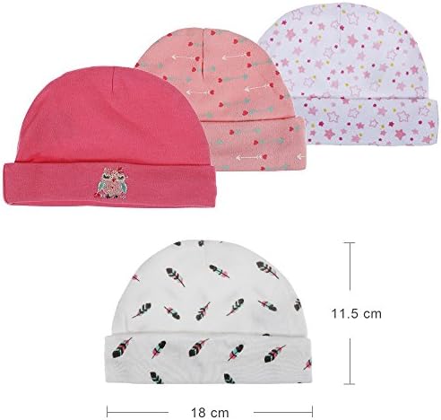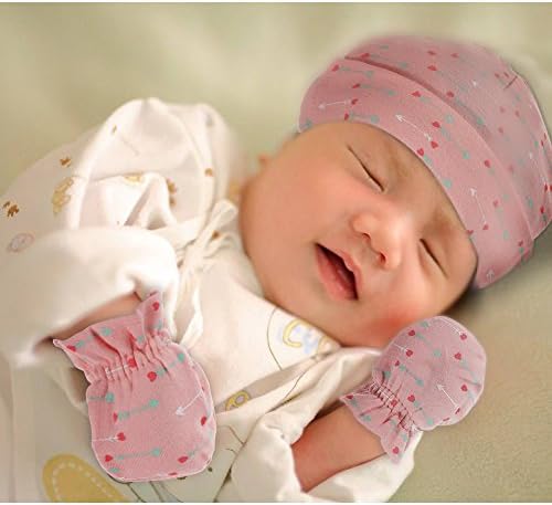 Lictin Newborn Baby Caps Mittens – 100% Cotton 4pcs Baby Caps Hats and 4 Pairs Baby Scratch Mittens Gloves for Baby Girl 0-6 Months (Pink)