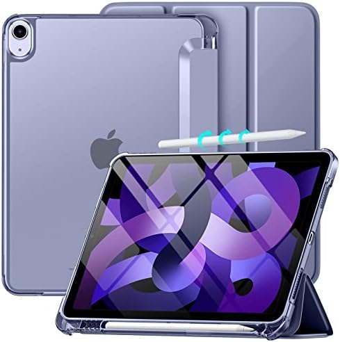 Maledan Case for iPad Air 2022/2020 10.9 inch, iPad Air 5th Generation Case with Pencil Holder, [Support 2nd Gen Apple Pencil Charging] Translucent Frosted Back Smart Cover, Auto Wake/Sleep, Blue Grey