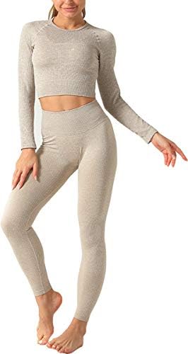 Mayround Seamless Women Yoga Sets 2 Pieces Ribbed | Long Sleeve Top and High Waist Leggings Gym Clothes Set | Women’s Sportswear Set