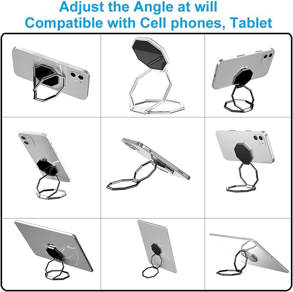 【Portable & Adjustable】- This metal cell phone finger ring stability holder back stand is 360 degree rotation and 180 degree folding, you can use it in your desk, office desktop, nightstand, kitchen counter. It also can be adjusted arbitrarily, supporting the mobile phone in portrait and landscape when you are shooting selfies, watching movies or using Zoom, Facetime, making video chat, giving you a unlimited vision.