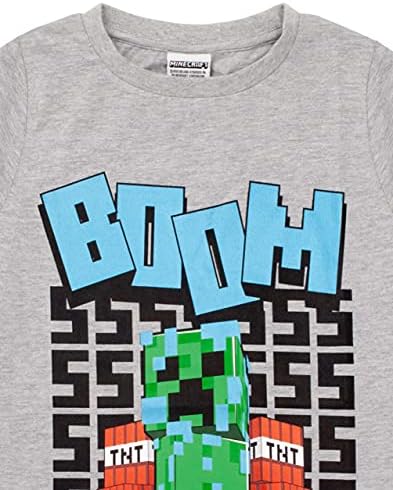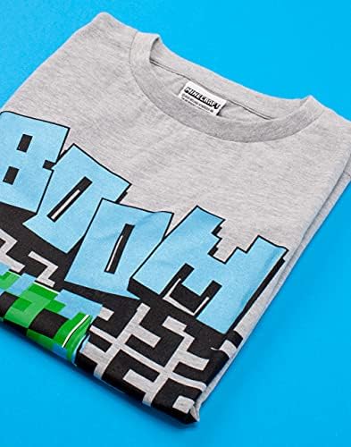 Minecraft T Shirt Boys | Kids Charged Creeper Character Short Sleeve Grey Top | Children’s TNT Boom Explosive Merchandise