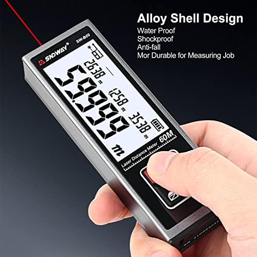 📐Durable & Portable Design: This laser electronic tape measure with refined metal shell, shock-resistant and more comfortable touch feel. IP54 waterproof level and dust-proof function for long time using. Wrist strap let you should the laser measuring meter steady and carry easily