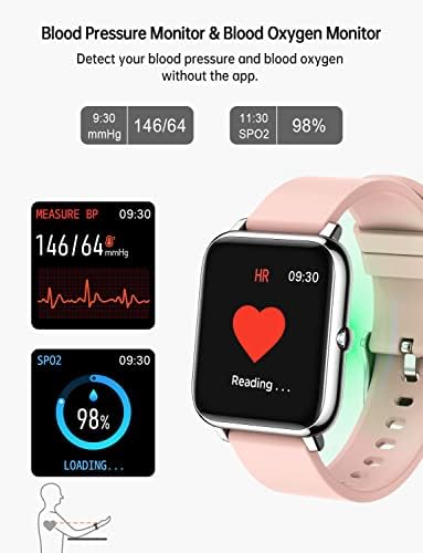 【24 hours health monitoring】Popglory smart watch has heart rate, blood pressure, blood oxygen monitor functions, always paying attention to your physical health, but the data is just used for reference. This smart watch can also measure your sleep automatically, which helps you know awake, light, and deep sleep data.
