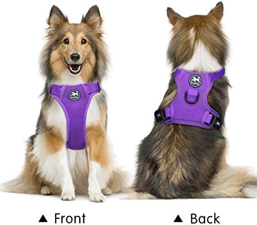 PoyPet Reflective Soft Breathable Mesh Dog Harness Choke-Free Double Padded Vest with Adjustable Neck and Chest(Purple,M)