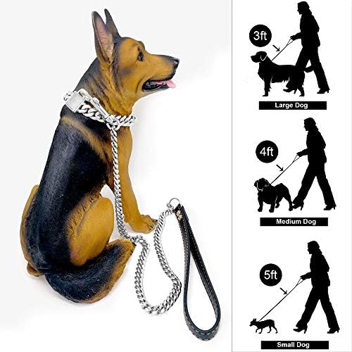 Chain Leash Size: Chain width is 12MM (0.47″), Available totally length are 3ft, 4ft, and 5ft.