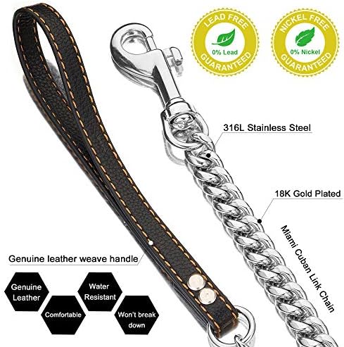 Follow WW to find more style of Dog Chain Collar for Medium Larger Dogs, Prong Training Walking Choke Collar Cuban Link Chain Strong Heavy Duty Chew Proof Stainless Steel Metal Chain Leash for Rottweiler Pitbull American Bully German Shepherd Husky Belgian Malinois