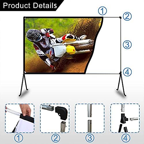 Projector Screen (150″), Projector Screen and stand 16:9 HD Foldable Outdoor Indoor Projector Screen, Video Projection Screen for Home, Party, Office, Classroom