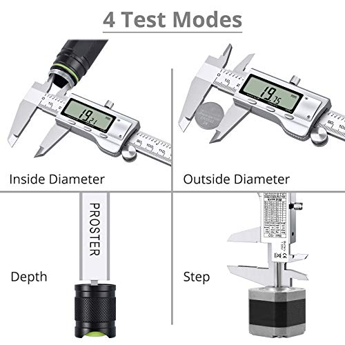 Proster Digital Vernier Caliper 8 Inch/ 200 mm Stainless Steel Electronic Caliper Fractions/Inch/Metric Conversion Measuring Tool for Length Width Depth Inner Diameter Outer Diameter