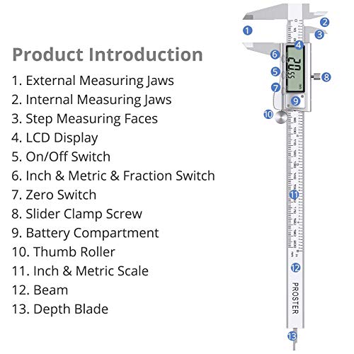 Be the first to review “Proster Digital Vernier Caliper 8 Inch/ 200 mm Stainless Steel Electronic Caliper Fractions/Inch/Metric Conversion Measuring Tool for Length Width Depth Inner Diameter Outer Diameter”