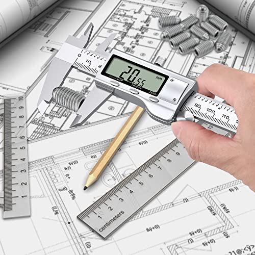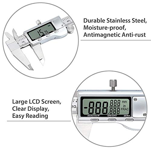 【Hardened Stainless Steel】Digital Vernier Caliper is Made of Higher Quality Zinc Alloy 4CR134 Stainless Steel, The Vernier Calipers Comes with Depth-measurement Blade, Precise Internal And External Measuring Jaws, Precision Lapping Finish Electronic Caliper