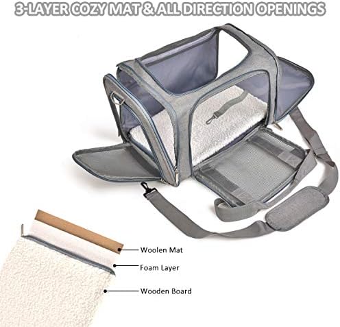 Qlfyuu Cat Carrier Dog Carrier Portable Pet Carrier, Soft Sided Cat Carrier Medium Small Airline Approved, Foldable Bunny Puppy Cat Carrier up to 15lbs, Cat Bag Carrier for Travel(Gery,Medium)