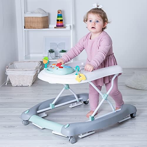 The Baby Go Round Twist & Walk from Red Kite is a 3 in 1 walker, rocker and push along. Suitable from six months, the Baby Go Round Twist & Walk features three height adjustable frame for growing babies, interactive play tray with tunes and lights and detachable teething toys. The large base easily converts into a rocker style base and includes colourful coordinated foot mat and large deep padded seat for extra back support. Encourage first steps with the removable seat unit and convert the Baby Go Round Twist & Walk to a push along walker with push handles. Once you’re finished, the Baby Go Round Twist & Walk folds flat for easy storage and transport.