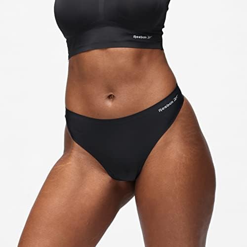 Reebok Women’s Rae Sports Thongs, Bonded Seamless Multi Pack Workout Underwear – Black/White/Cold Grey, Pack of 3
