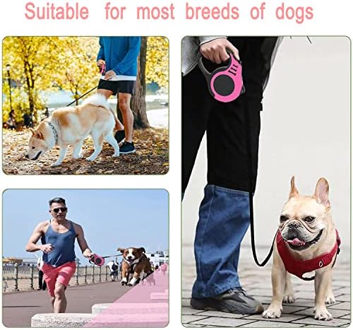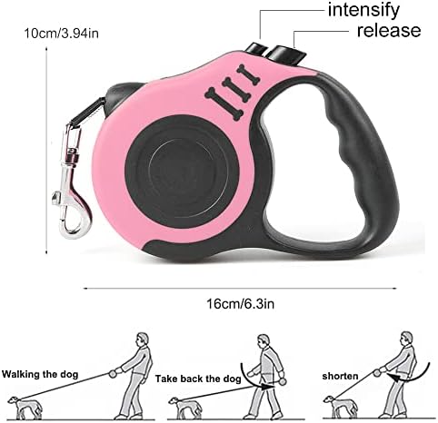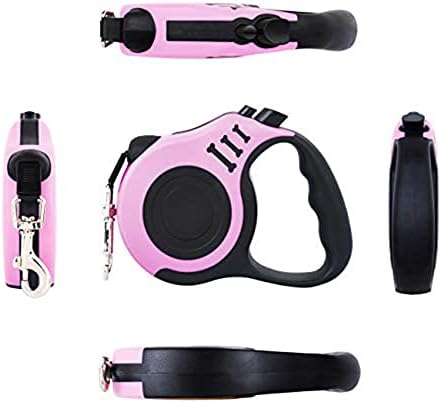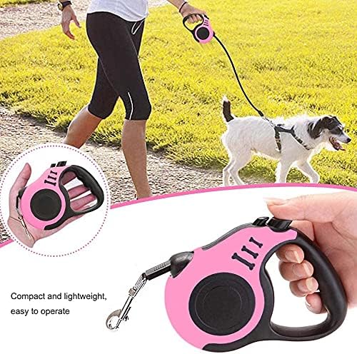Retractable Dog Leash, 5m Durable Nylon Pet Leash, With Non-Slip Handle, no Tangles, Single-Hand Brake. (pink)