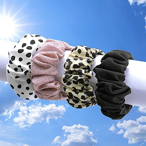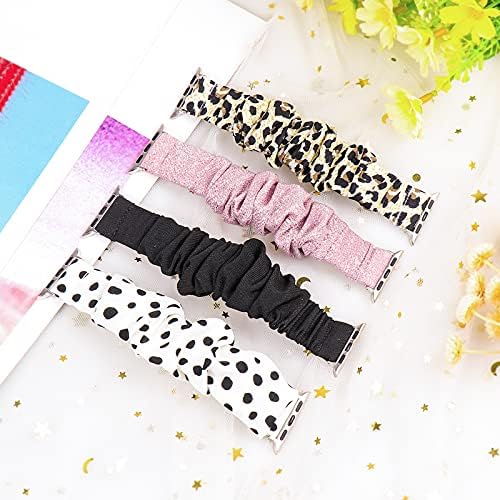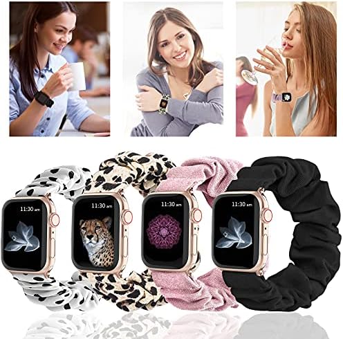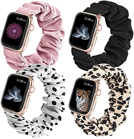 4 Packs: no buckle, easy to put on or take off. Elastic design and advanced printing craft, fits just like a loose scrunchy. You can switch the compatible with scrunchie Apple Watch band colors according to your dressing