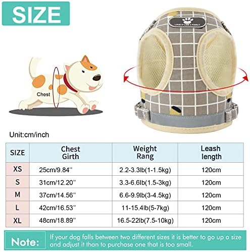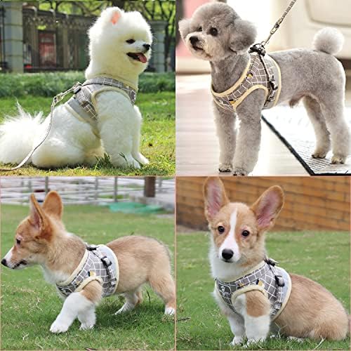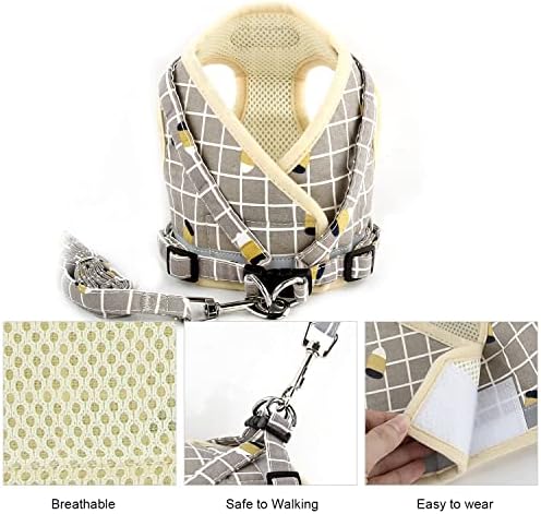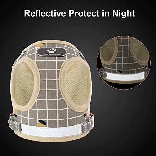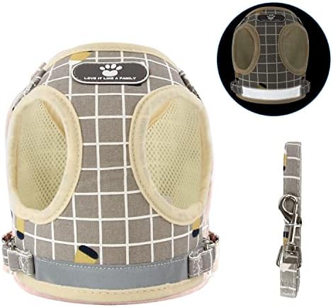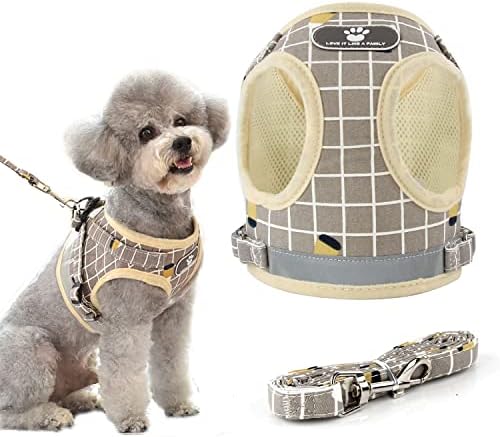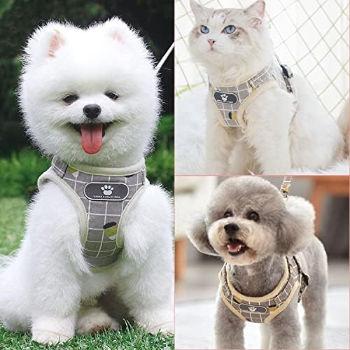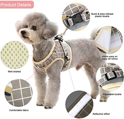 Small Dog harness and lead set,Soft Mesh Reflective Breathable Dog Car Harness Pet Vest Harness Step-In for Cat Puppy with Leash Adjustable for Outdoor Walking Training(XS, grid Khaki)