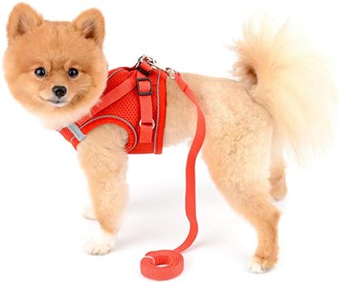 SMALLLEE_LUCKY_STORE Soft Mesh Step-in Small Dog/Cat Harness and Lead Set for Walking Reflective Puppy Vest Harness Outdoor Training,Red,Size L