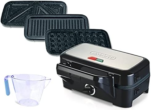SMART 3-in-1 Waffle/Grill/Sandwich Toaster (Black) Bundle with FREE Soft Grip Measuring Jug